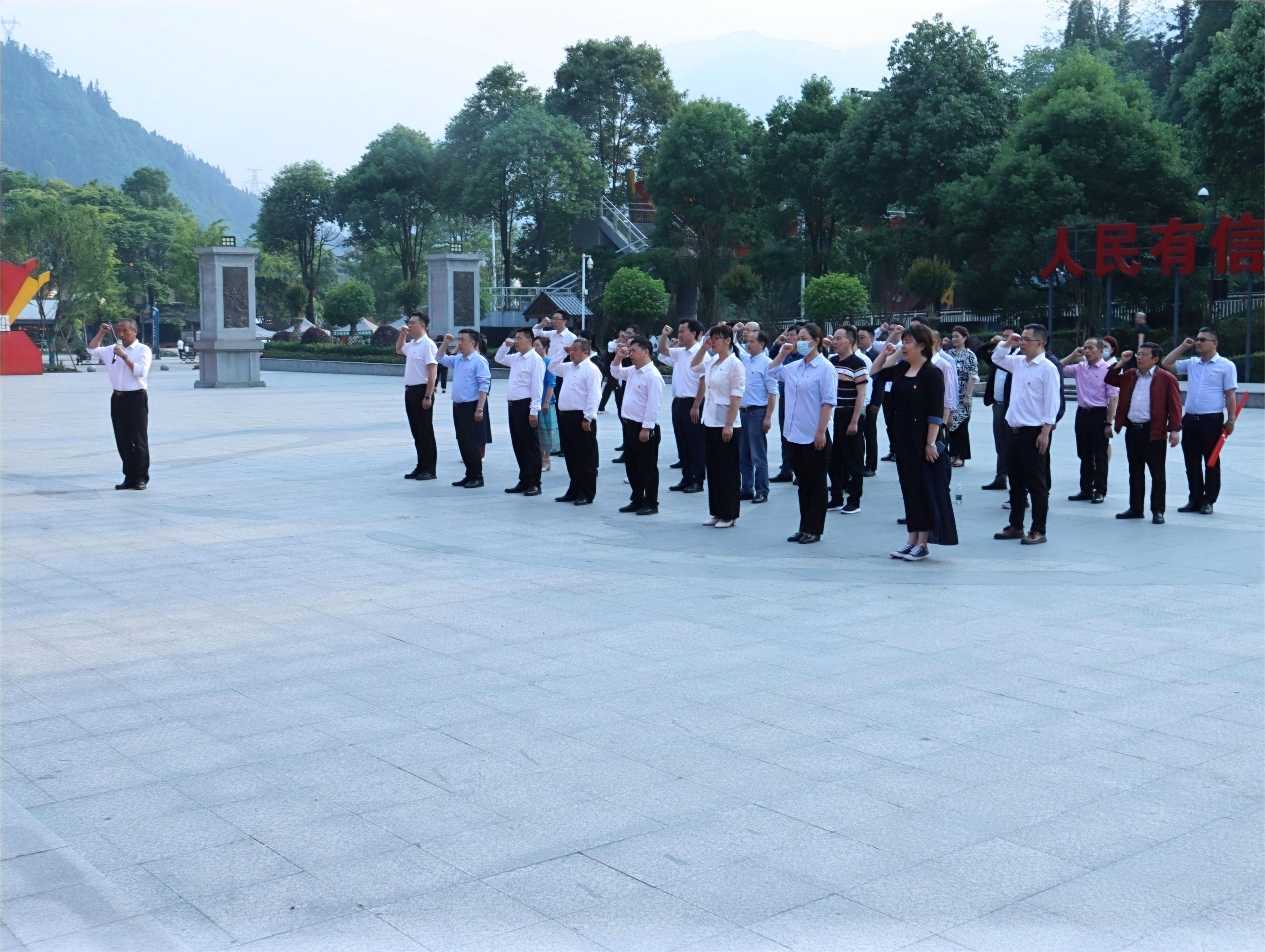 在映秀爱国主义教育基地宣誓广场,全体党员面向鲜红的党旗,庄严地举起右手,在党委书记吴昊的带领下,齐声重温入党誓词:“我志愿加入中国共产党,拥护党的纲领,遵守党的章程,履行党员义务,执行党的决定,严守党的纪律,保守党的秘密,对党忠诚,积极工作,为共产主义奋斗终身,随时准备为党和人民牺牲一切,永不叛党!”铭记对党的誓言,不忘入党之初心,牢记责任与使命。