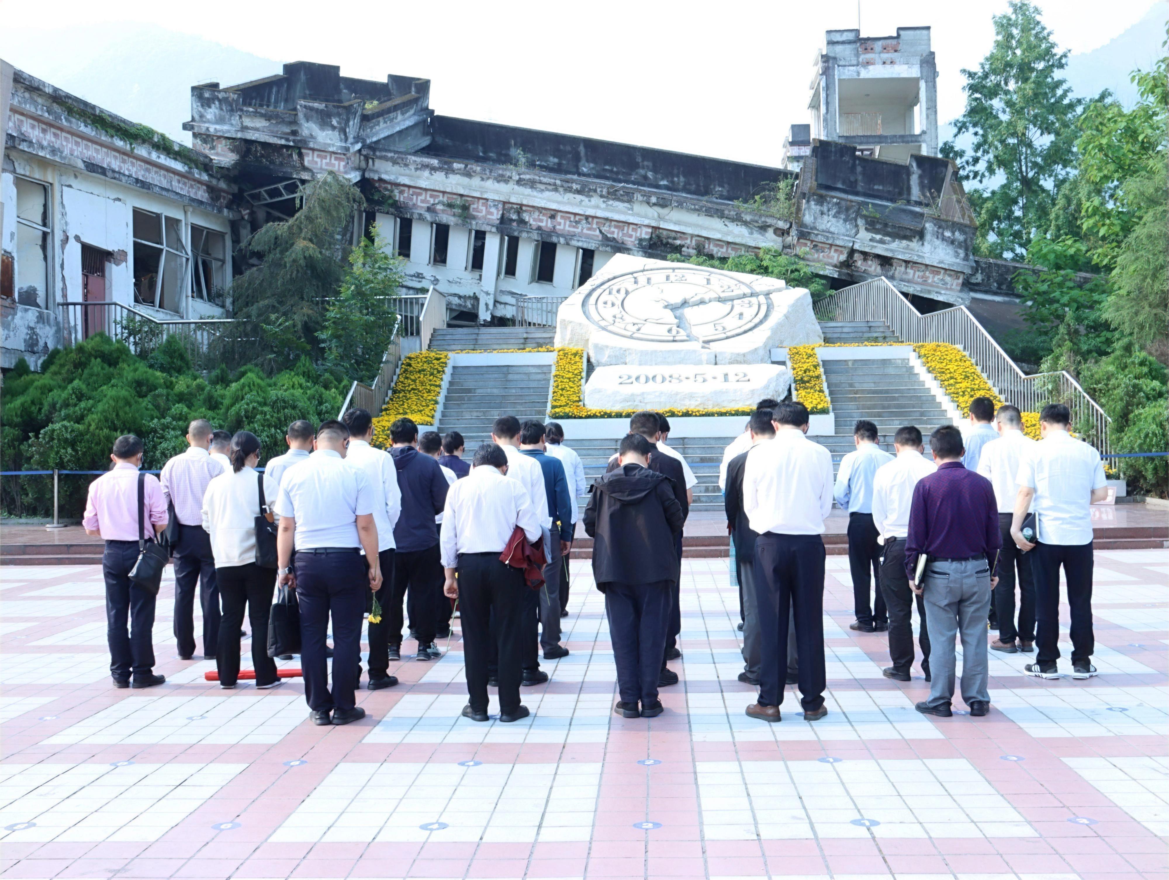 【本网讯】为推动学习贯彻习近平新时代中国特色社会主义思想主题教育走深走实,5月16日下午,学校组织全体校领导、中层干部赴映秀爱国主义教育基地“5·12”汶川特大地震映秀震中纪念馆、映秀震中遗址和家国情怀宣誓广场接受爱国主义教育,感受伟大的抗震救灾精神。